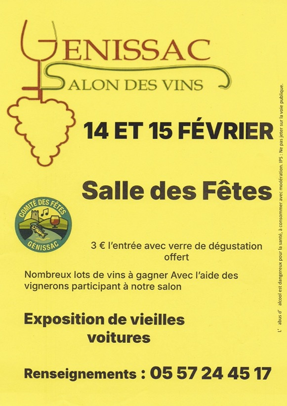 Le comité des fêtes vous donne rendez vous à la salle des fêtes du bourg, le samedi 14 et dimanche 15 février pour son traditionnel Salon des vins